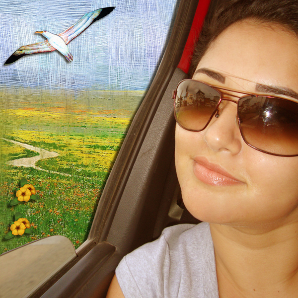 A wonderful photo and a very creative scrap...hard to see what you were really looking at (reflection in sunglasses) but your background does look super!