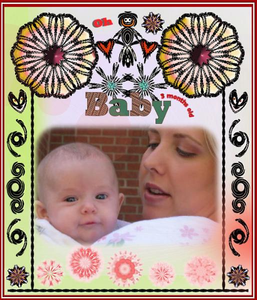 I did this one this morning. I am scrapping journal pages of all our time together, and this one was done for my daughter, and both granddaughters. I used this picture in another scrap, but it's one of my favorites. My little granddaughter appears to be amused with me. It's that expression that I love!
