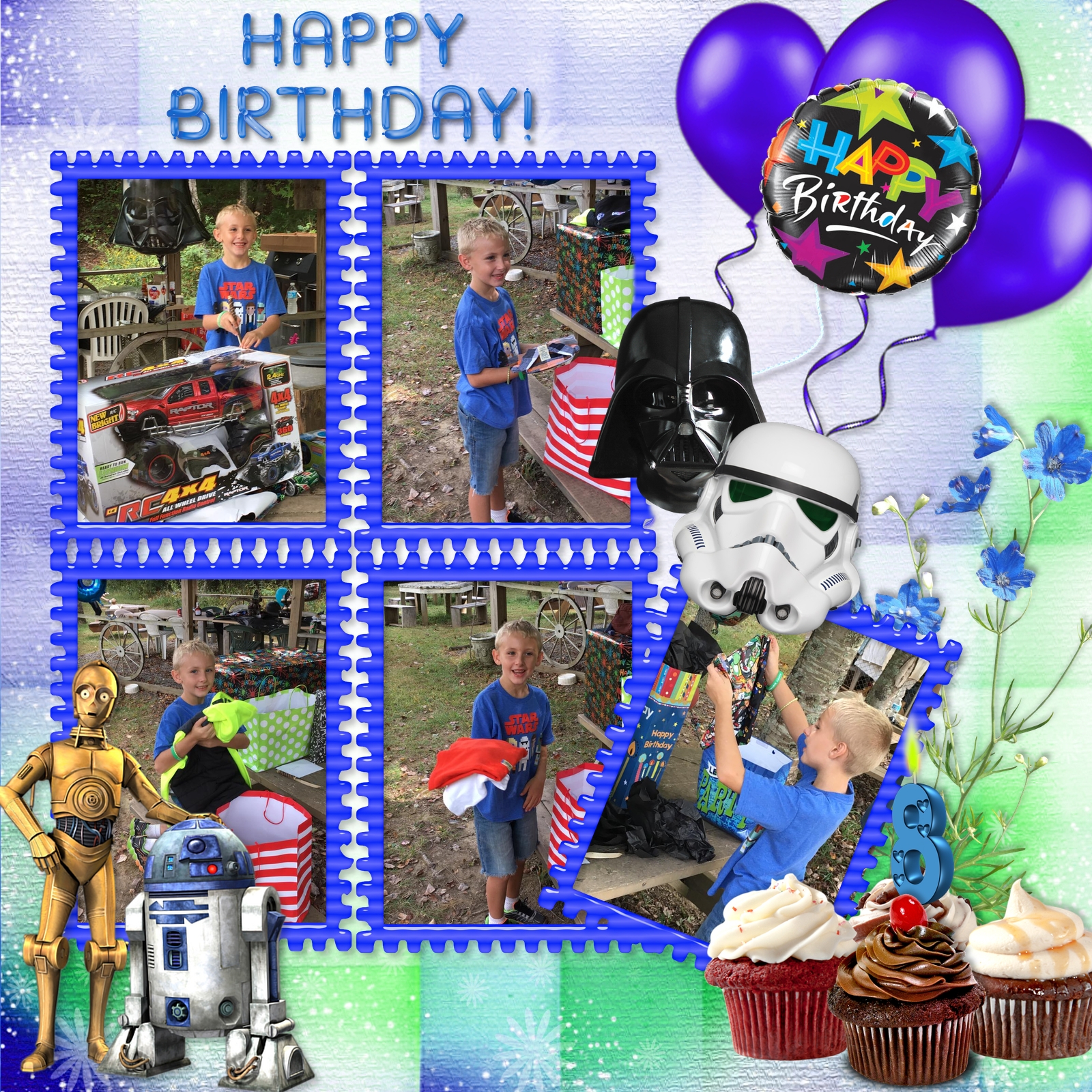 Photos: By: Jeri-Ann, Verizon Cell Photoshop14: Topaz Kit: Happy Birthday, By: Louise L, Digital Scrapbooking Boutique Elements: Balloons, Star Wars Characters, Word Art, Cupcakes,Bing
