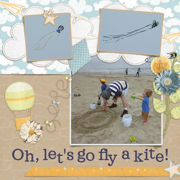 Oh, let's go fly a kite Up to the highest height... Mary Poppins is now a favourite in my house, and Lets go fly a kite, my sons' new favourite song (with Everyday I wear a hat, for any Australians out there ;-) ). So they had a great time on the beach when two ladies were flying a penguin and a bee. A hot air balloon, little planes, a kite and more fun elements in Arizona Girl's new collection Flying high made it the perfect choice to scrap that moment.