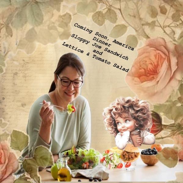 Nothing fancy, continuing with my perception of USA. With food becoming more expensive, Dinner will become less fancy, sandwich, salad, and a selection of fruits, for dessert. This menu will become more common, and more healthy, hopefully, in Middle Class America. The Sloppy Joe Sandwich is a favorite of mine.