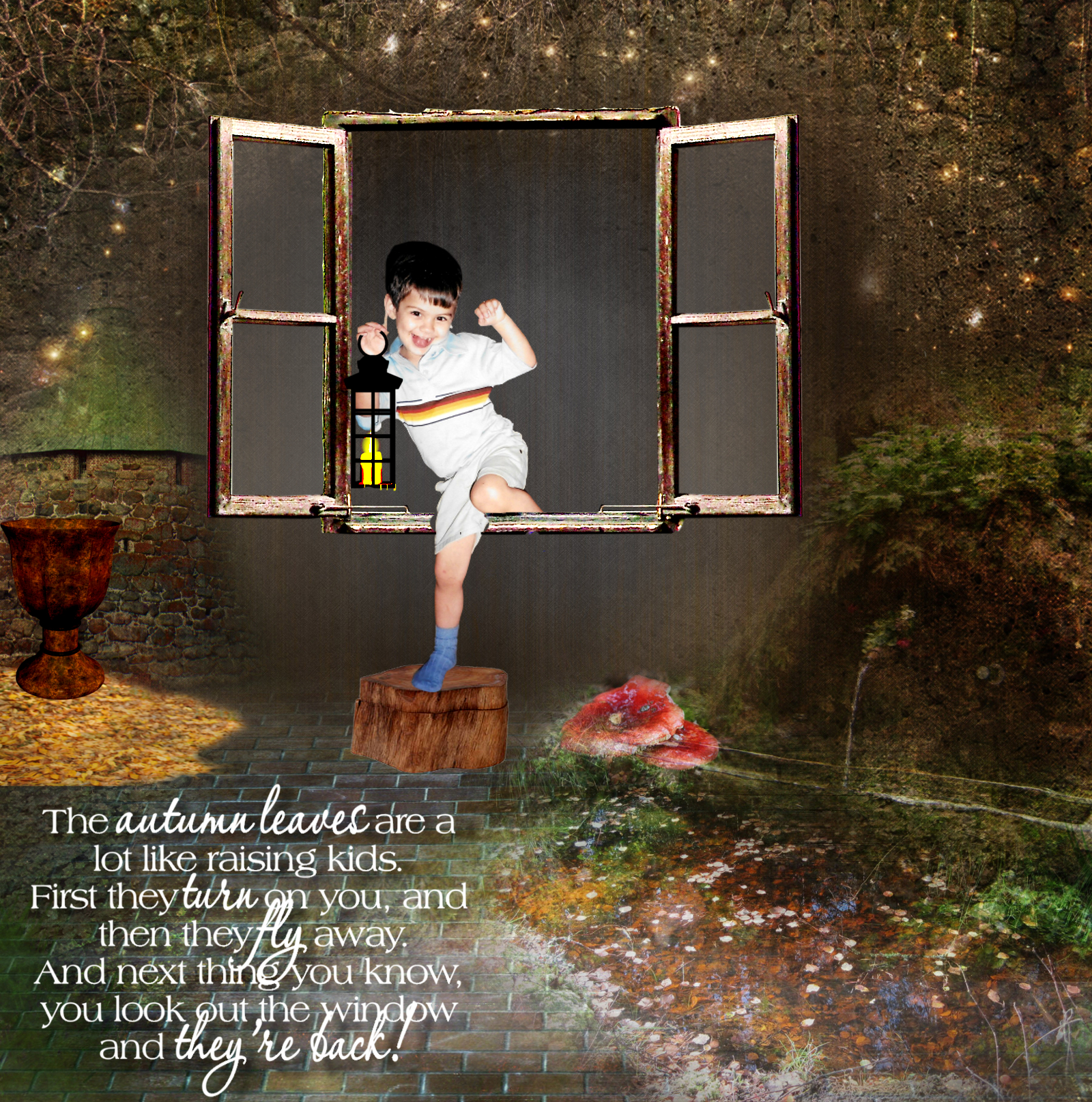 Very clever Margie. Love the way you have him climbing out of the window with the lantern. That is a beautiful garden too.