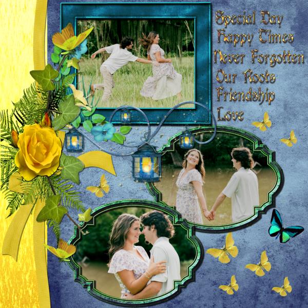 RDH Nostalgia of Summer BG.2 and frame, RDH Cherish Always Wordart, Arlene Moonlight Mist Cluster frame,11Wac Page Cluster yellow flower