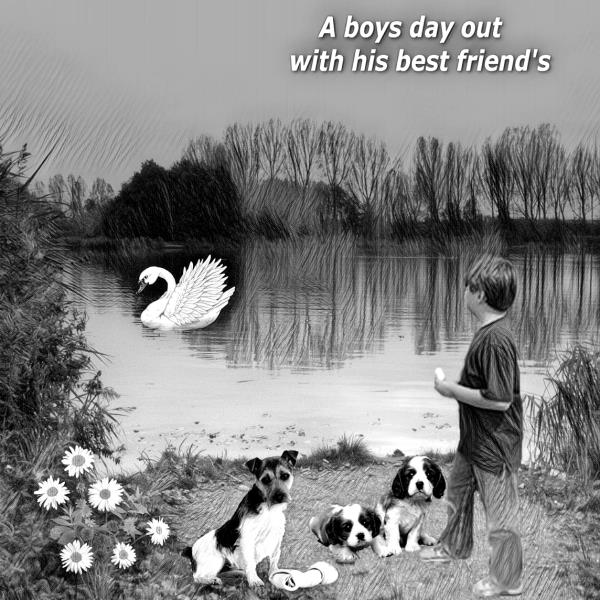 I made a sketch and then gray scaled it the colored one is the old page the old page is too old to remember the kit I used