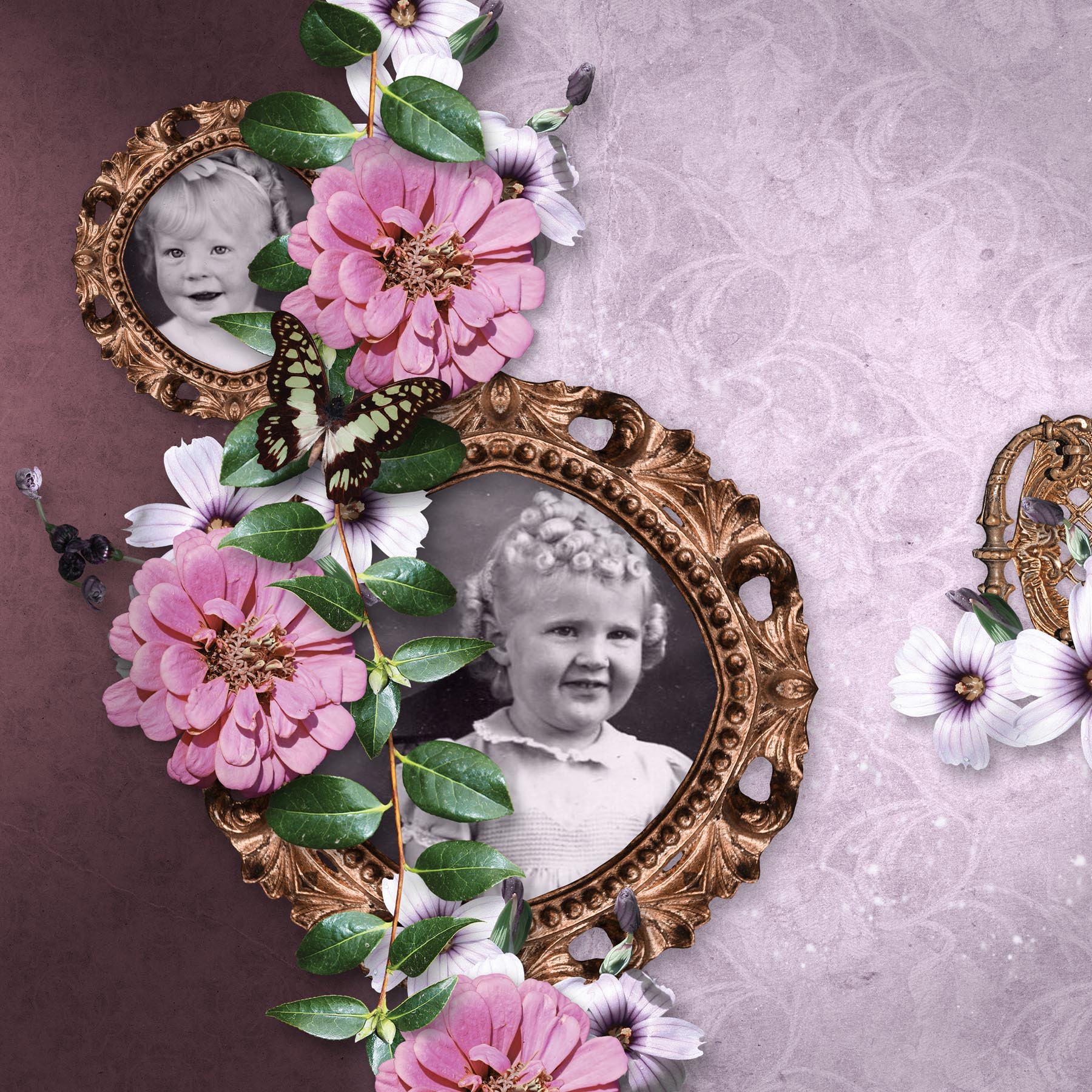 Aw cute LOL. Love the curls. Such a beautiful vintage page Marjean. Love how you split the page with the falling flowers and greenery. Fantastic work xo
