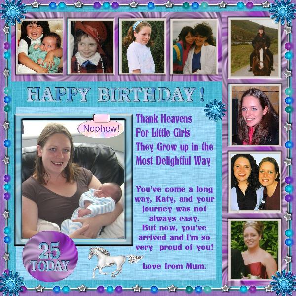 Today is the Birthday of Katy, my second daughter. She's had a bit of a difficult time over the last few years but still remains as warm loving and cheerful as ever. Finally things seem to be going right for her, and this is just to let her know how glad I am and how much I appreciate her. PS. The baby is her sister's!