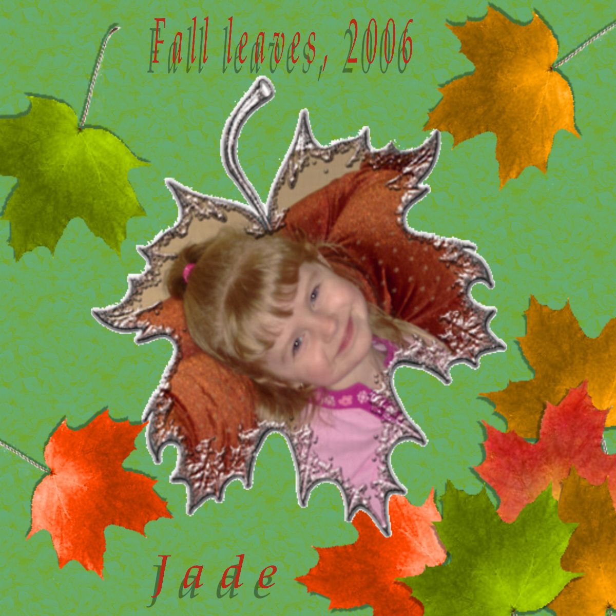Posted in the fall leaves challenge, if you like my page, please vote for me there too! Thank you! A picture of my daughter Jade from last fall! Finally able to scrap that picture!hehe Used my new kit except for the leaf frame thats from a program that I had!:0) Thanks for looking!:0)