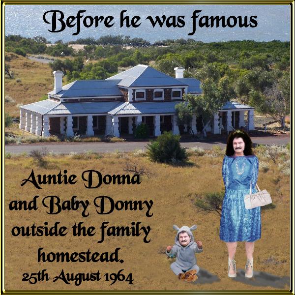 Photograph provided by a daughter of Auntie Donna. Frame and layout by me. Blue dress by that well known designer Don O'DonDon Hair, feet, shoes and handbag filched from Annie.