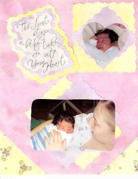 This is an actual scrapbook page I did a few years ago. I simply scanned it onto the pc, thus the weird looking colors.